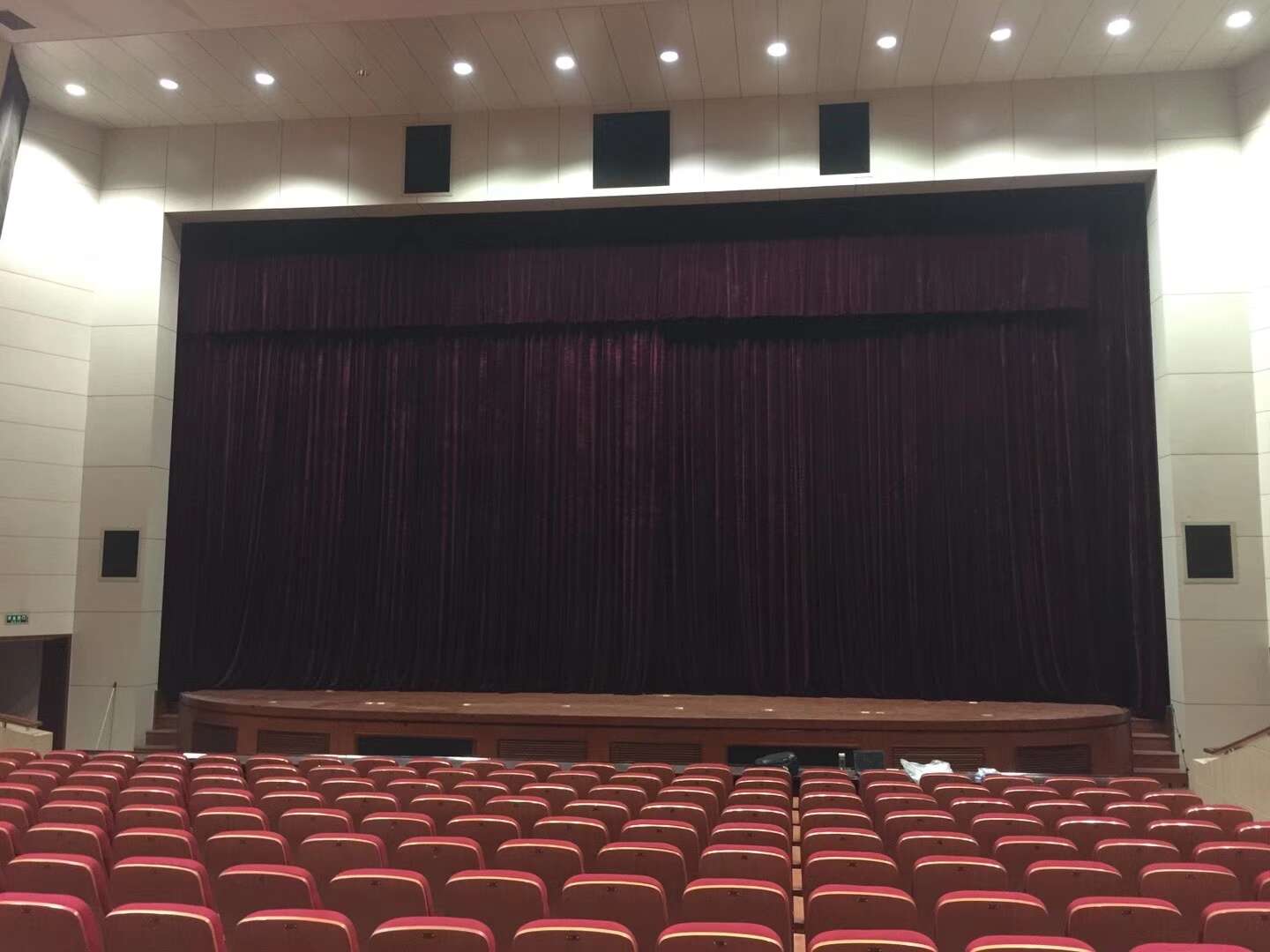 1. 防火幕:防火幕緊貼臺口;一般超過1200坐,要求必須設計防火幕;2. 前沿幕(徽標):防火幕以后,間隔300mm左右;若沒有防火幕緊靠臺口200-300mm;3. 對開大幕: